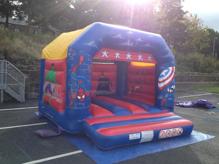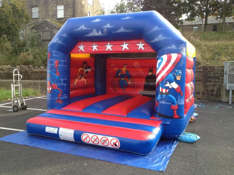This bouncy castle is full of all the excitement and energy of your favourite crime busting superheroes and their special abilities. The beautifully decorated blue and red coloured bouncy castle blazes the colours of Spiderman, Superman and Captain America across the high quality frame with extra secure high walls, to ensure that even the strongest and highest bouncing of your own little characters stay completely safe.
