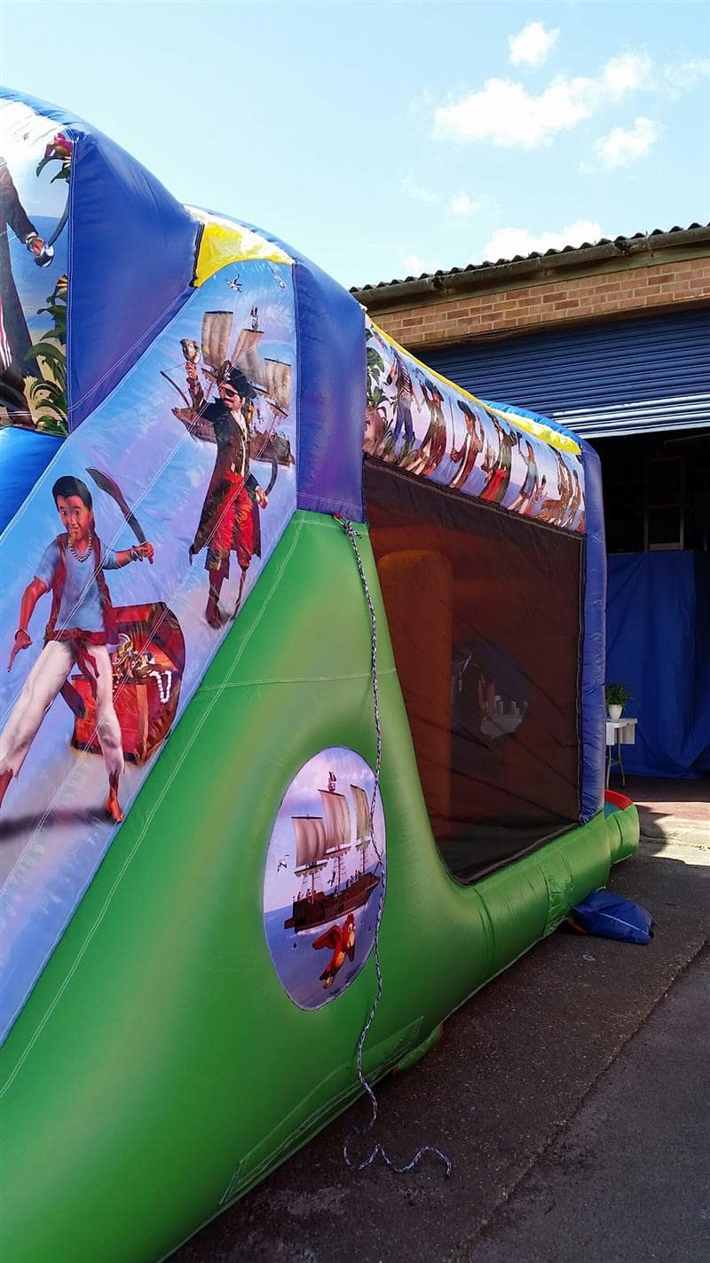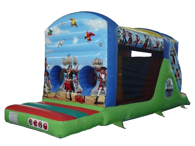 Tilt your party at full mast ye skirvy sea dogs yee with this land loving inflatable pirate activity fun run. Watch the kids assume their seafaring roles as they immerse themselves in the ways of adventure loving pirates! Your shipmates can bounce ride the waves of the inflatable run, navigating bish bash storms and finally taking a plunge into the great sea as they abandon ship using the fun runs exciting slide at the end...yarghh!