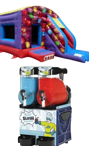 Turn your party into a full-blown celebration with our Celebration Bounce and Slide paired with a Double Tank Slush Machine. This dynamic duo ensures non-stop entertainment for your guests, offering the perfect blend of bouncing, sliding, and enjoying delicious slush beverages. Elevate your event with this unbeatable combo!