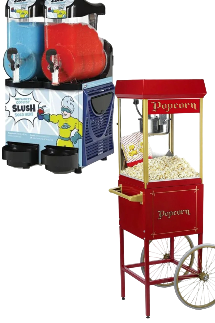 Please Note - The standard flavour of the Popcorn is sweet. The standard flavour of the Slush is red and/or blue. However, if you would like different flavours, then we require a 1 weeks notice in advance to ensure we have the correct supplies for your big day.